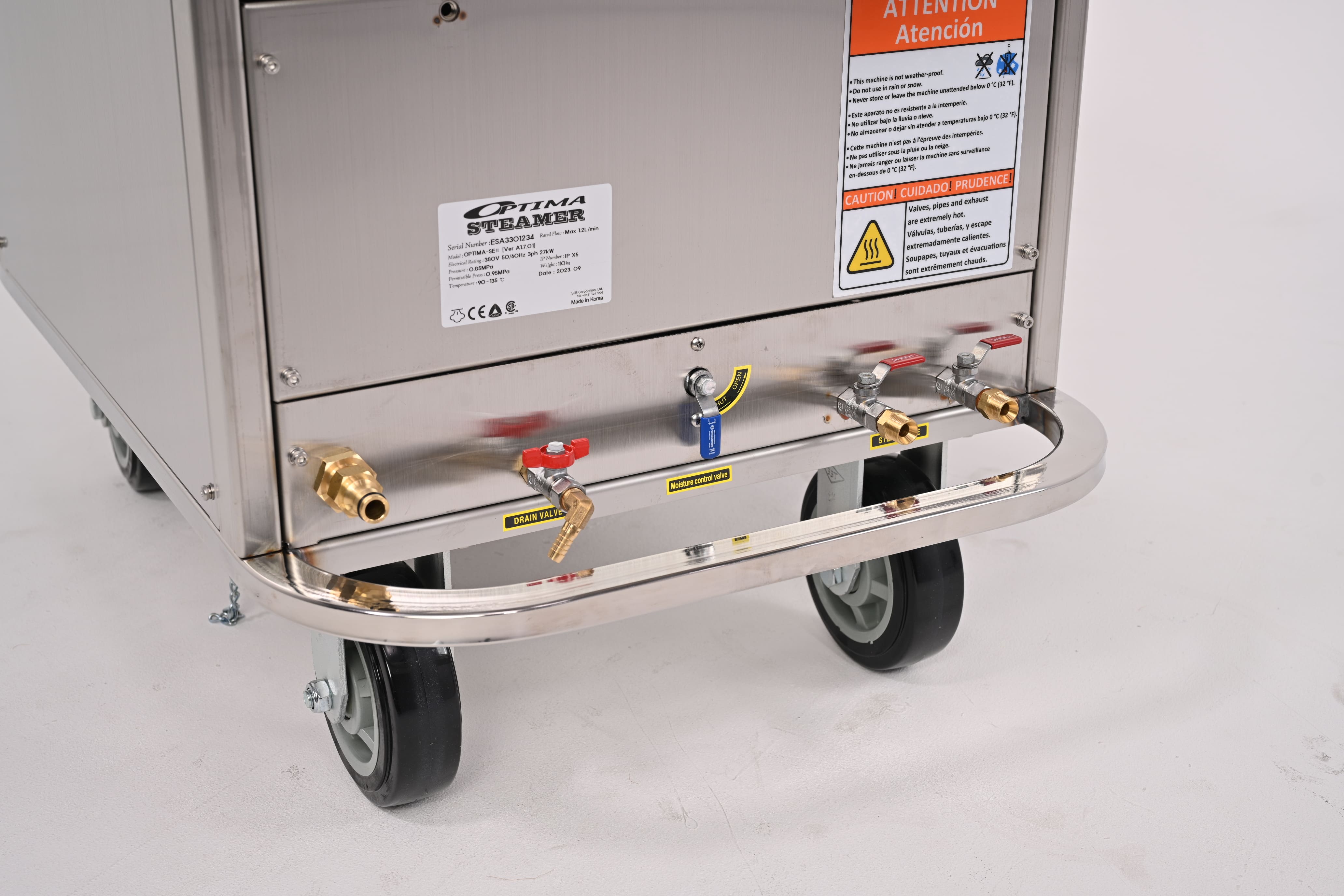 CONVENIENT CONNECTIONSThe SEII has 2 steam output connections standard with options available for more. Connect a water hose for an unlimited supply of water. -