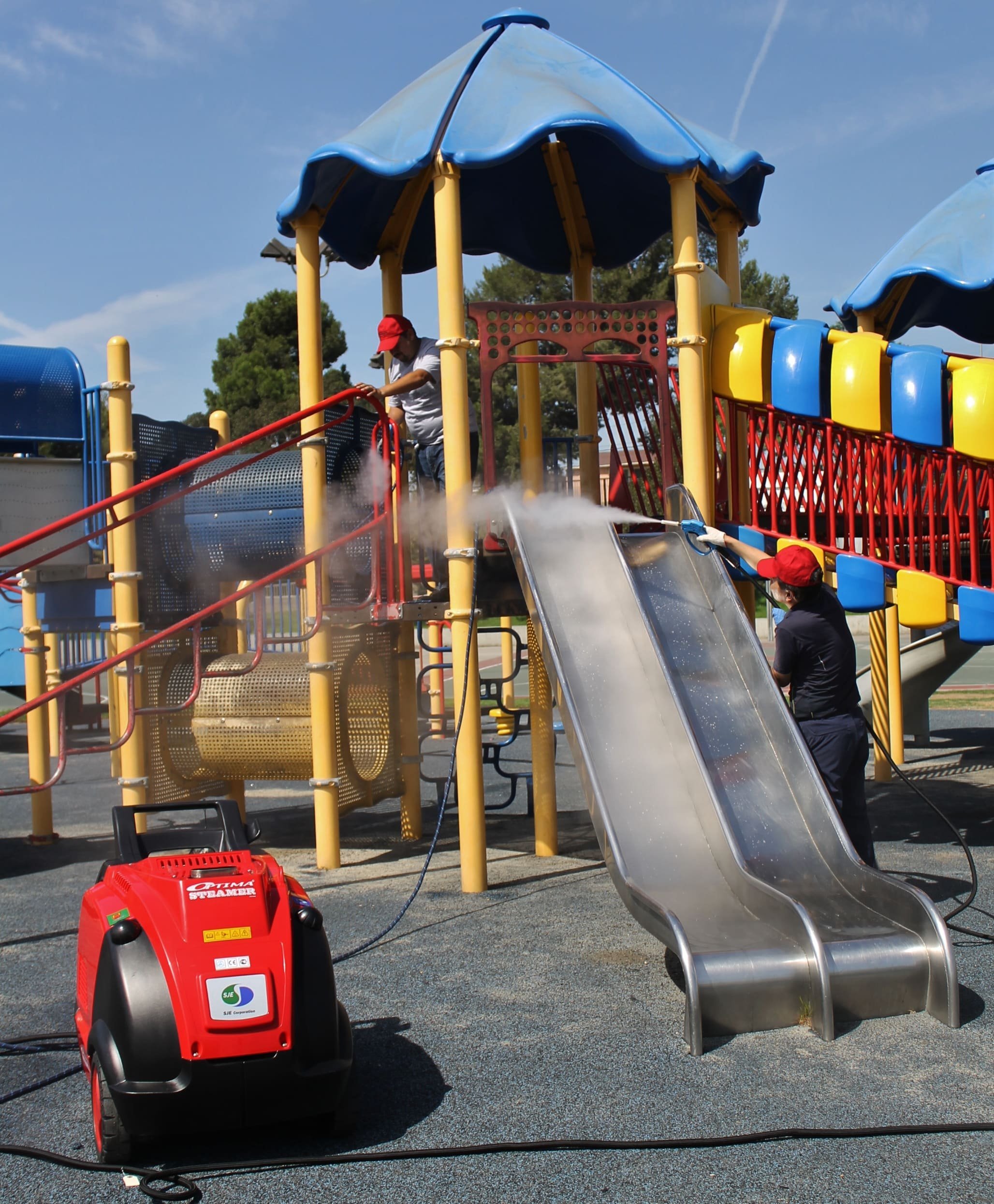 And for high-touch playground equipment, superheated steam is the perfect solution—chemical-free, safe, and highly effective.